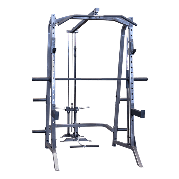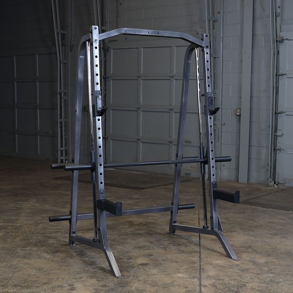 For traditional barbell workouts, the Powerline by Body-Solid PSM200 Smith Machine features two composite lined j-cups and two 13" safety spotter arms. Four integrated weight horns on the machine help keep weight plates neat, organized, and easy to access. For an even more robust and complete home gym, add the optional Lat Attachment (PLT200) with a bench and unlock even more workout variety, including pulldowns, triceps extensions, wood chops, curls, and more.