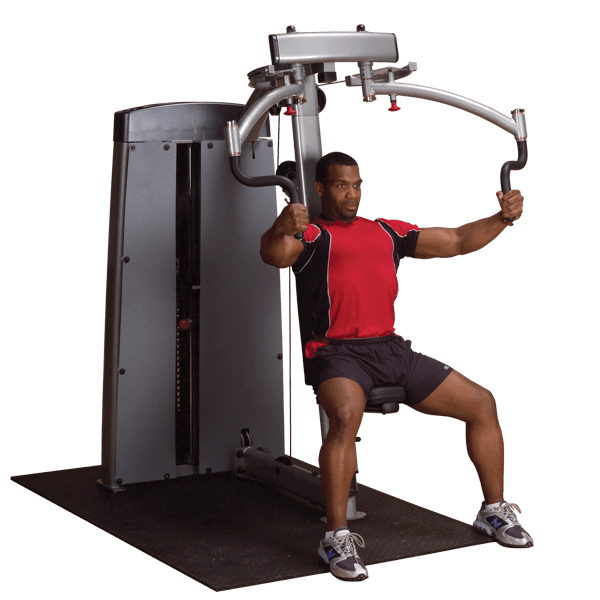 Body-Solid’s Pro Dual Pec/Delt Machine’s dual overhead variable resistance cams allow each arm to operate independently, providing unilateral and bilateral chest, back and shoulder conditioning.