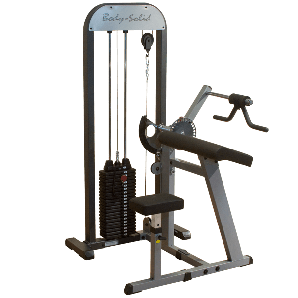 This unique cam design features intelligent dual function capabilities for the price of one. The bicep tricep machine features a wide range of adjustability from a 7 position seat adjustment to 28 different starting positions ensuring full range of motion. The bicep curl pivots and rotates to accommodate forearm length while reducing wrist stress. Positioned at a 30 degree angle the arm stabilization pad allows proper joint alignment without elbow pressure on the pad. Pull the large pop pin to lower the lifting arm and grab hold of the rotating v-bar handle for the bicep curl exercise. Now adjust the lifting arm upward and lock it in for a quality tricep pressdown.