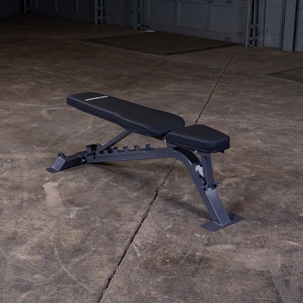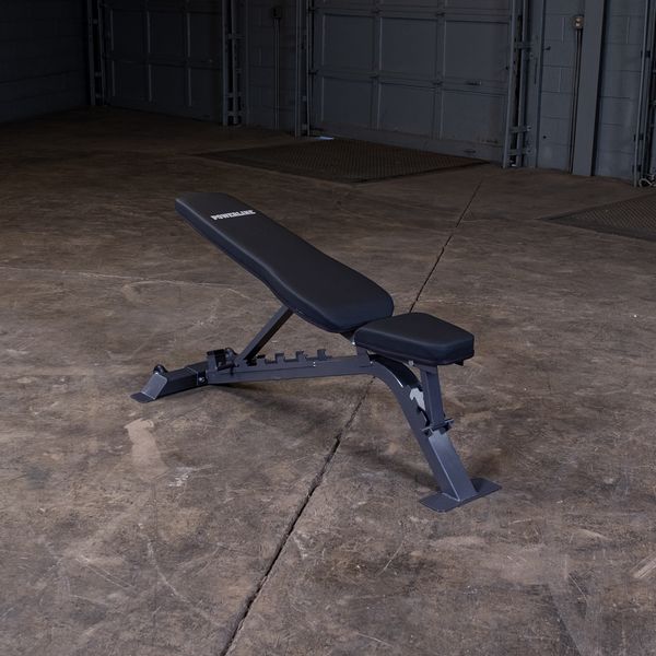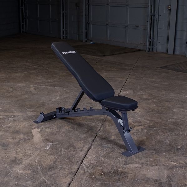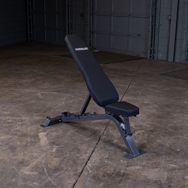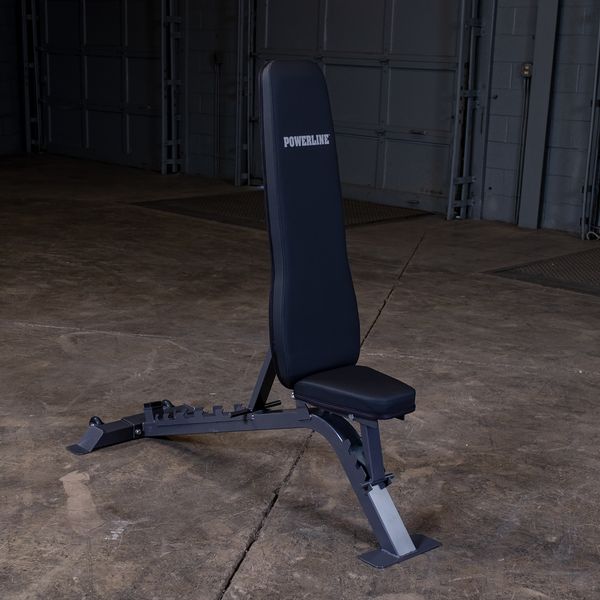 Powerline by Body-Solid’s PFI150 Flat/Incline Bench is designed for use in home, garage and basement gyms with an emphasis on workout variety thanks to independent ladder-style back (-18°, 0°, 15°, 30°, 45°, 60°, 80°) and seat pad (0°, 10°, 18°) adjustments.