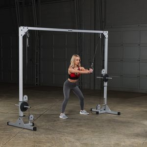 There is no better way to achieve total body conditioning than with this strong performer. The trustworthy design lets you exercise virtually every major muscle group in your body. Sturdy construction of the extra wide and tall mainframe provides you with easy access to an endless array of high and low pulley exercises. Your workout options become unlimited when you invest in one of the most versatile and functional machines manufactured today. The professional carriage system utilizes patented nylon bushing technology and eight sealed ball bearing, high resin pulleys. Top and bottom pulleys swivel smoothly and fully with over 180° of movement for frictionless guidance in all directions. Built and guaranteed with the quality that will last a lifetime, the Cable Crossover Machine is a dynamic addition to any home gym exercise program.