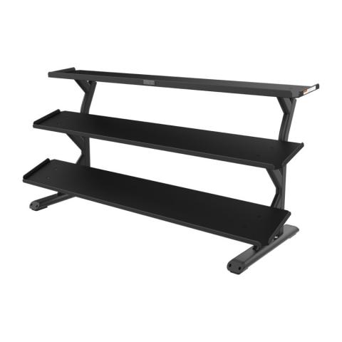 The space-efficient 3-tier, 15-pair flat tray has been tested for compatibility with MFitness and TAG rubber hex dumbbells.