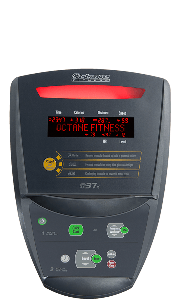 The Q37 is a multiple award-winning standing home elliptical machine, with several Best Buy designations and named one of Oprah’s Favorite Things in 2012. The best-selling Octane standing elliptical machine, this powerhouse offers CROSS CiRCUIT, the ability to interact with your tablet via the Octane Fitness app – and thereby become your virtual personal trainer with a ton of exercise routines – and customized Workout Boosters.